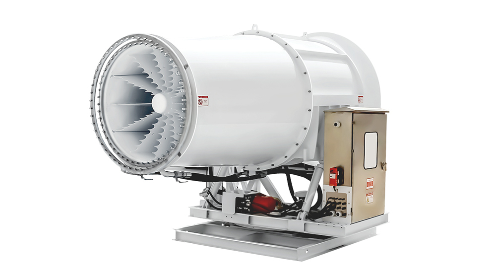 ZT-20覆帶式霧炮機,整機僅3 kW總功率,風機1.5 kW,可打出15-20米靜風射程,輕松覆蓋1200 m大面積,24個精密不銹鋼雙流噴頭,把水…
